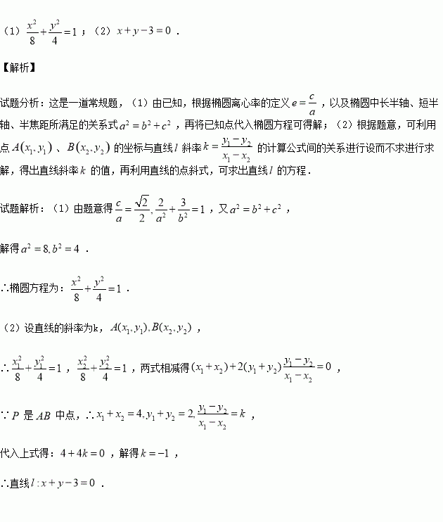与椭圆相交于A、B两点,若AB的中点恰好为点P,求直线