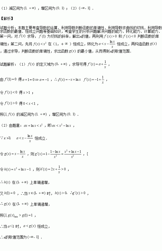 在点(1,f(1))处的切线斜率为0,求f(x)的单调区间;