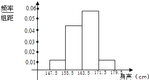 | 分组 | 147.5~155.5 | 155.5~163.5 | 163.5~171.5 | 171.5~179.5 |