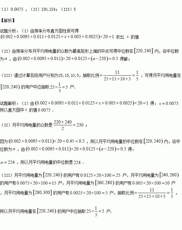 (II)求月平均用电量的众数和中位数;