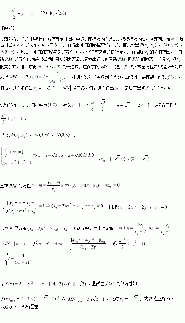 的圆心,过椭圆上的动点
