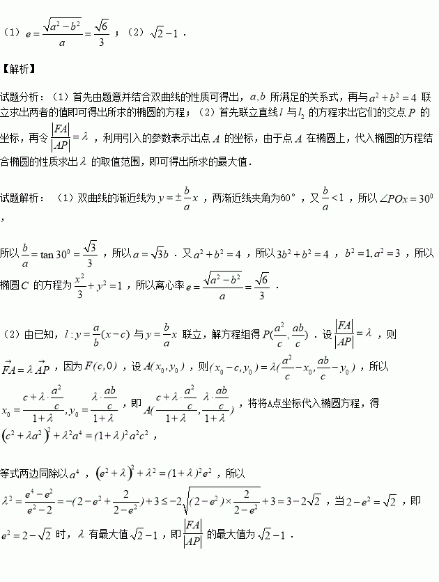夹角为60°,双曲线的焦距为4时,求椭圆
