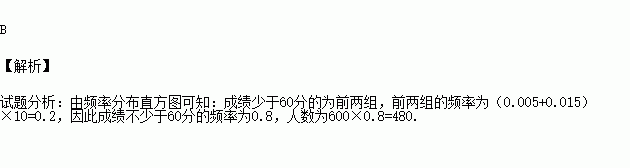 某校从高一年级学生中随机抽取部分学生,将他们的模块测试成绩分成6组:[40,50),[50,60),[60,70),[70,80),[80,90),[90,100]加以统计,得到如图所示的频率分布直方图.已知高一年级共有学生600名,据此估计,该模块测试成绩不少于60分的学生人数为( )