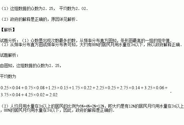 £¨2£©µ±µØÕþ¸®Öƶ¨ÁËÈ˾ùÔÂÓÃË®Á¿Îª3tµÄ±ê×¼£¬Èô³¬³ö±ê×¼¼Ó±¶ÊÕ·Ñ£¬µ±µØÕþ¸®½âÊÍ˵£¬85%ÒÔÉϵľÓÃñ²»³¬³öÕâ¸ö±ê×¼£¬Õâ¸ö½âÊͶÔÂð£¿ÎªÊ²Ã´£¿