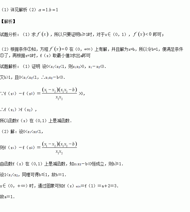 (1)若b≥1,求证:函数f(x)在(0,1)上是减函数;