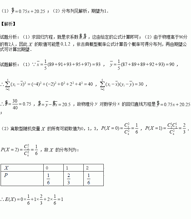 表示选中的同学中物理成绩高于90分的人数,求随机变最