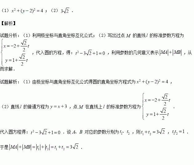 (t为参数),再以原点为极点,以x正半轴为极轴建立坐标系,并使得它与直角坐标系有相同的长度单位,在该极坐标系中圆C的方程为