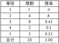 (12分)某日用品按行业质量标准分成五个等级,等级系数依次为1,2,3,4,5.现从一批日用品中随机抽取20件,对其等级系数进行统计分析,得到频率分布表如表所示: