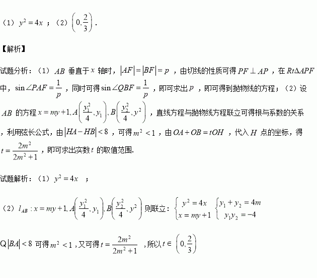 (1)求抛物线方程;