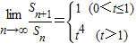 n,然后对t=1,t>1,0<t<1分类讨论,分别求出极限值即可.