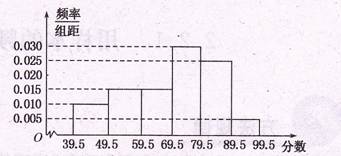 从参加环保知识竞赛的学生中抽出60名,将其成绩(均为整数)整理后画出的频率分布直方图如下: