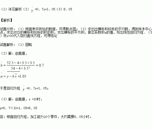 (3)根据回归方程估计加工10个零件需要多少个小时。