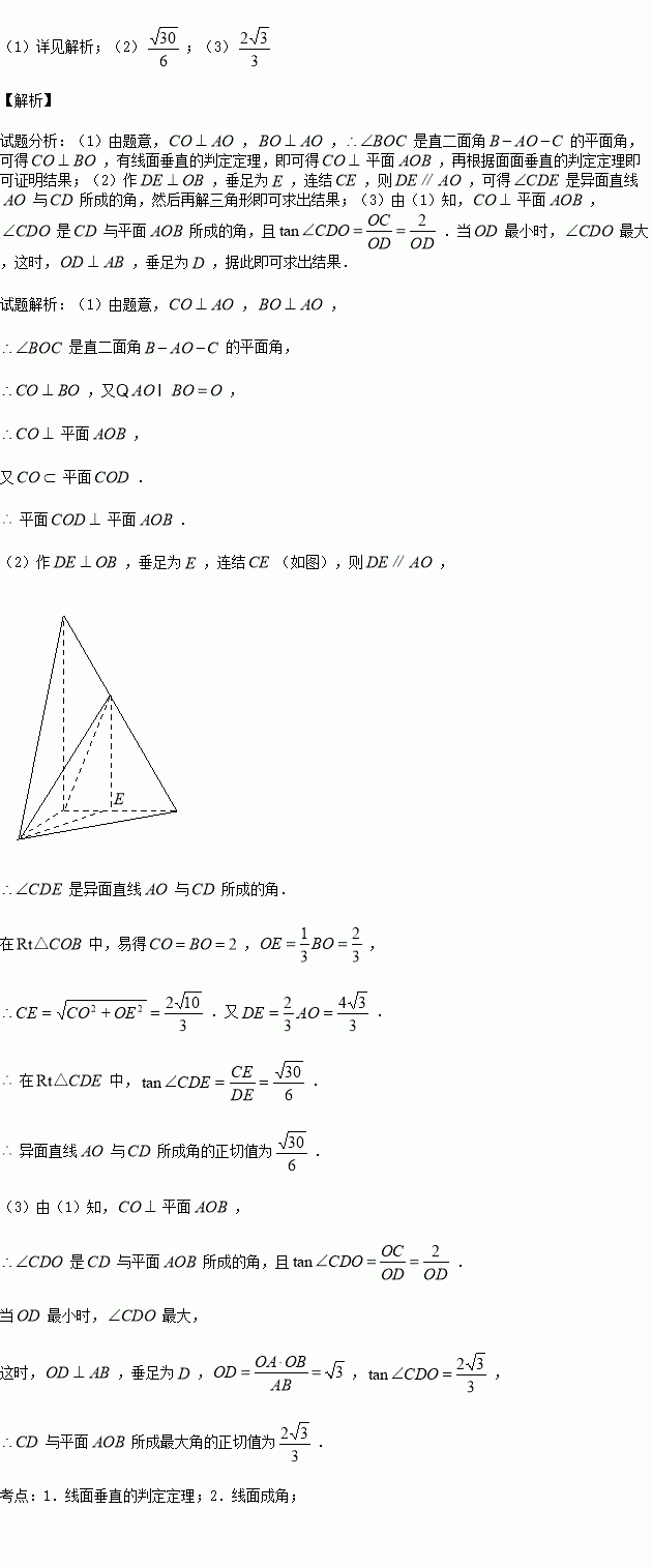 所成最大角的正切值.