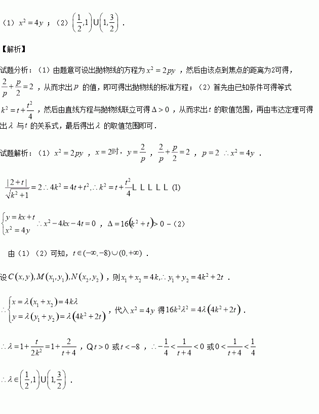 轴正半轴上,抛物线上一点的横坐标为2,且该点到焦点的距离为2.
