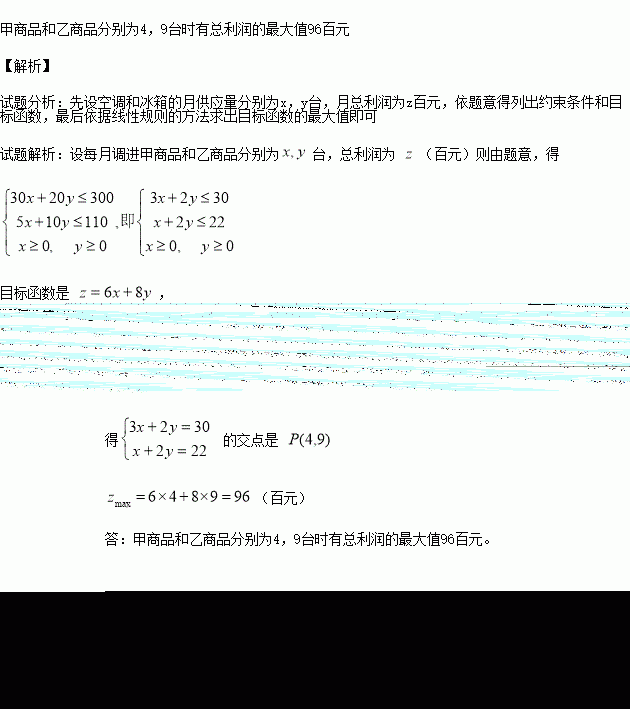 问:该电商如果根据调查得来的数据,应该怎样确定甲商品和乙商品的月供应量,才能使该电商获得的总利润最大?总利润的最大值为多少元?