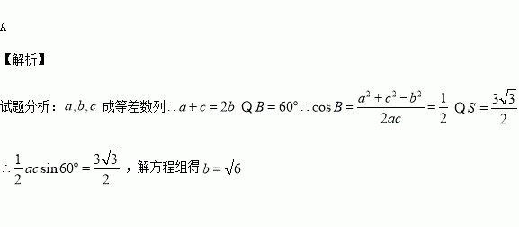 △ABC中,a,b、c分别为∠A、∠B、∠C的对边,如果a、b、c成等差数列,∠B=60°,△ABC的面积为