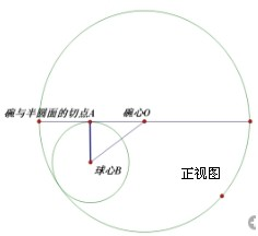 在正视图中,球心B,球心O(同时也是圆心O),