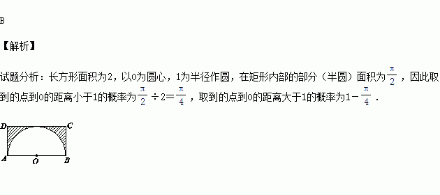 ABCD为长方形,AB=2,BC=1,O为AB的中点,在长方形ABCD内随机取一点,取到的点到O的距离大于1的概率为( )