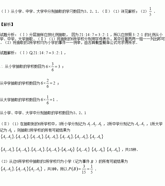 (Ⅰ)求应从小学、中学、大学中分别抽取的学校数目;
