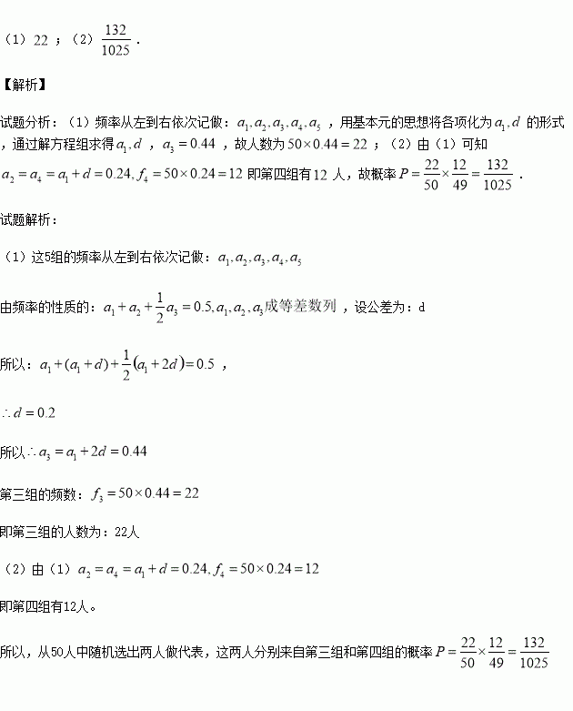 (2)若从50人中随机选出两人做代表,这两人分别来自第三组和第四组的概率是多少?
