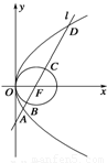 当l:y=k(x-1)时,代入抛物线方程,得:k2x2-(2k2+4)x+k2=0,