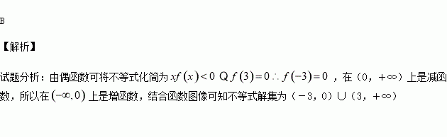 若函数y=f(x)为偶函数,且在(0,+∞)上是减函数,又f(3)=0,则