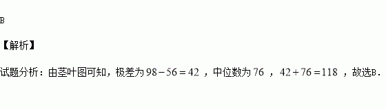 某学生在一门功课的22次考试中,所得分数如下茎叶图所示,此学生该门功课考试分数的极差与中位数之和为()