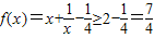 ∵当x>0时,当且仅当x=1时取等号,且在(1,+∞)上递增,