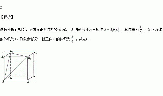 将某正方体工件进行切削,把它加工成一个体积尽可能大的新工件,新工件的三视图如图所示,则原工件材料的利用率为(材料的利用率=