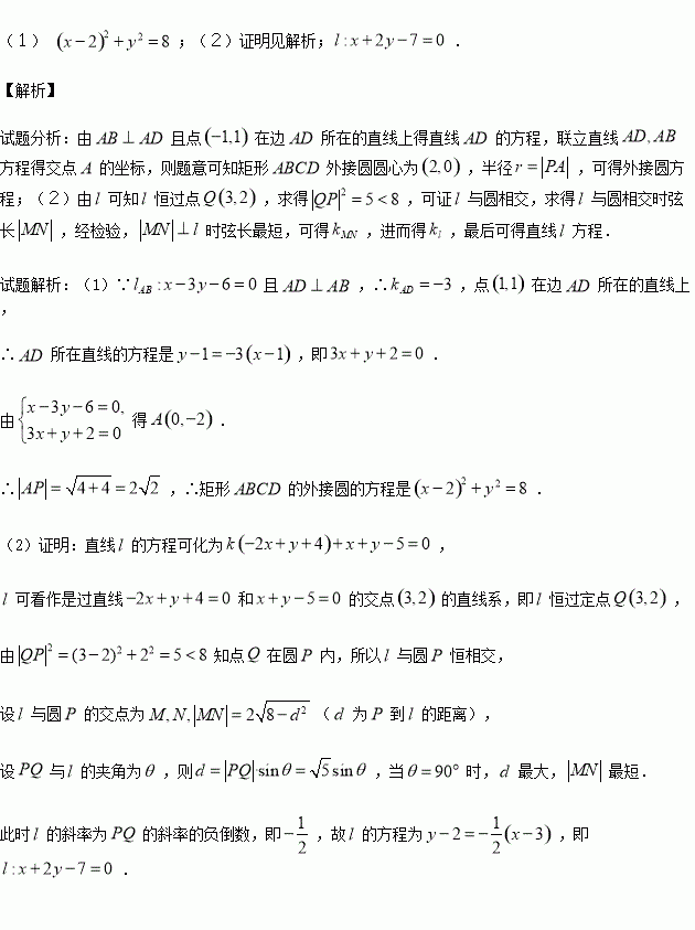 的外接圆恒相交,并求出相交的弦长最短时的直线