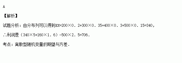以每束1.6元价格处理.根据前五年销售情况预测,节日期间这种鲜花的需求量X服从如下表所示的分布: