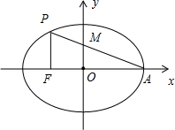 解:椭圆$\frac{{x}^{2}}{{a}^{2}}+\frac{{y}^{2}}{{b}^{2}}=1(a>b>0)$的左焦点为F,右顶点为A,点P在椭圆上,直线AP交y轴于点M,$\overrightarrow{PF}$=$\sqrt{3}\overrightarrow{MO}$,