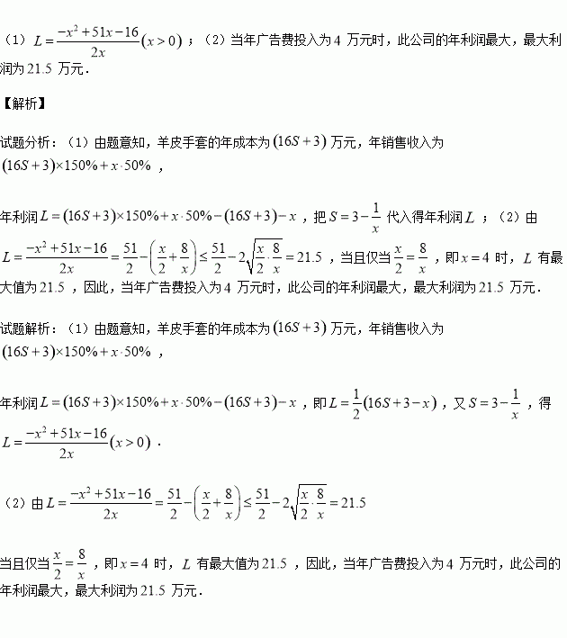 £¬ÒÑÖªÑòƤÊÖÌ׵Ĺ̶¨Í¶ÈëΪ3ÍòÔª£¬Ã¿Éú²ú1ÍòÔªÑòƤÊÖÌ×ÈÔÐèÔÙͶÈë16ÍòÔª£®£¨ÄêÏúÊÛÊÕÈë=ÄêÉú²ú³É±¾µÄ150%+Äê¹ã¸æ·ÑµÄ50%£©