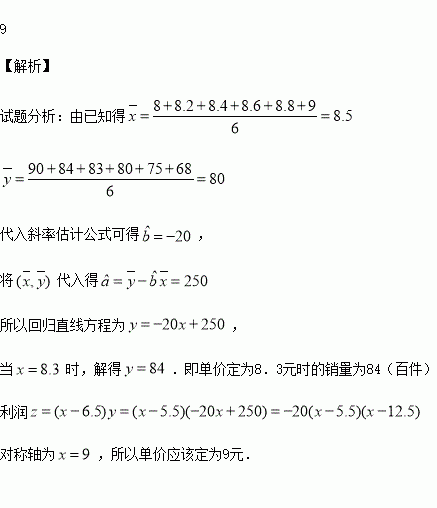 具有线性回归关系,该工厂每件产品的成本为5.5元,请你利用所求的线性回归关系预测:要使得利润最大,单价应该定为__________(元).