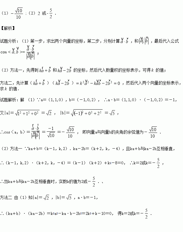 (2)若ka+b与ka-2b互相垂直,求实数k的值