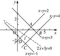 解:在直角坐标系中作出直线x+y=3,x+y=-1,x-y=4,x-y=2,