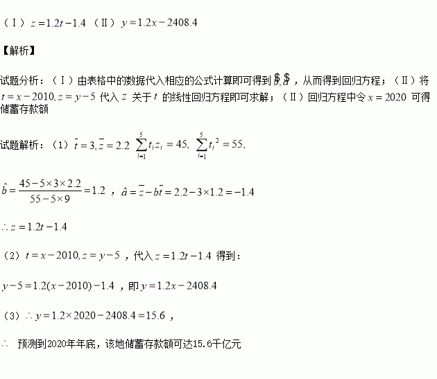 (Ⅲ)用所求回归方程预测到2020年年底,该地储蓄存款额可达多少?