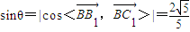 解答:解:如图,以B为原点建立空间直角坐标系,则B(0,0,0),C1(1,2,0),B1(0,2,0)