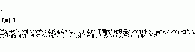 设P是△ABC所在平面外一点,P到△ABC各顶点的距离相等,而且P到△ABC各边的距离也相等,那么△ABC( )