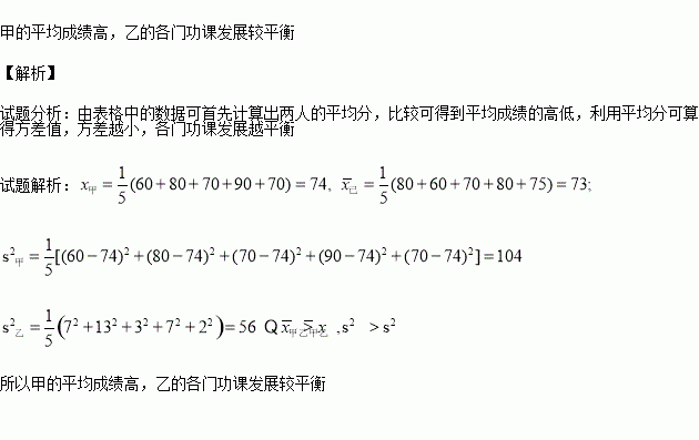 问:甲?乙两人谁的平均成绩高?谁的各门功课发展较平衡?