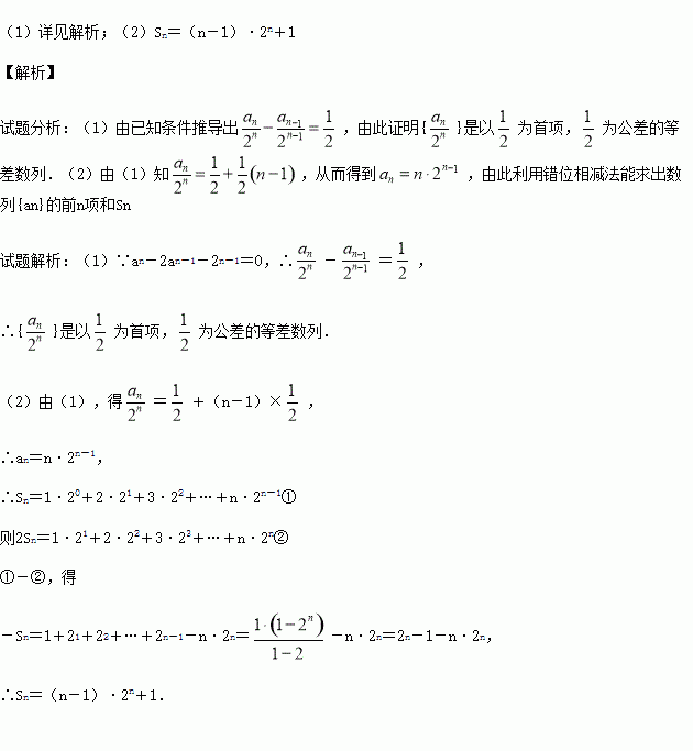 已知数列{an}满足a1=1,an-2an-1-2n-1=0(n∈N*,n≥2).