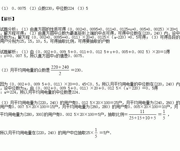 £¨3£©ÔÚÔÂÆ½¾ùÓõçÁ¿Îª[220£¬240£©£¬[240£¬260£©£¬[260£¬280£©£¬[280£¬300]µÄËÄ×éÓû§ÖУ¬Ó÷ֲã³éÑùµÄ·½·¨³éÈ¡11»§¾ÓÃñ£¬ÔòÔÂÆ½¾ùÓõçÁ¿ÔÚ[220£¬240£©µÄÓû§ÖÐÓ¦³éÈ¡¶àÉÙ»§£¿