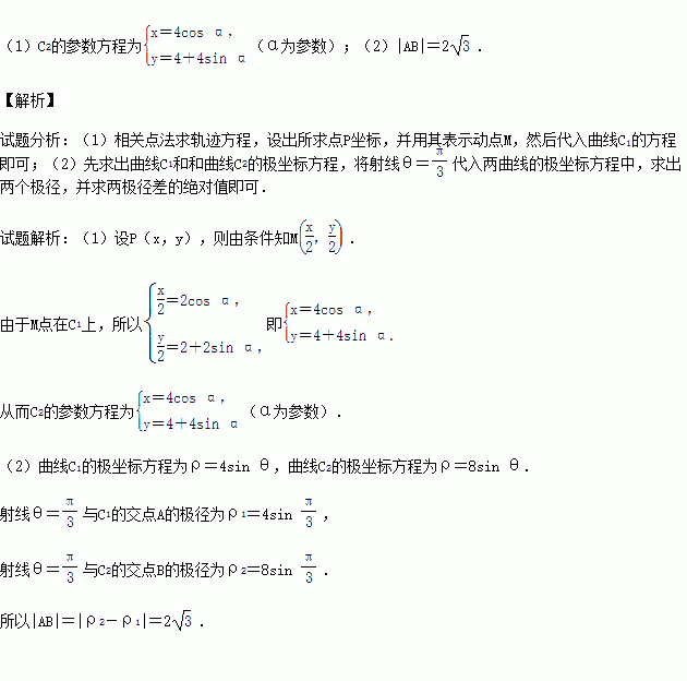 与C1的异于极点的交点为A,与C2的异于极点的交点为B,求|AB|.