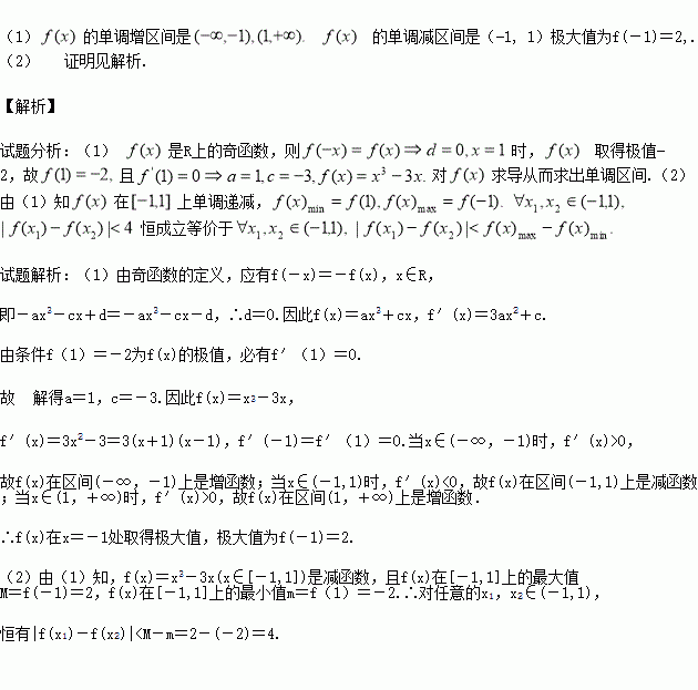 已知函数f(x)=ax3+cx+d(a≠0)是R上的奇函数,当x=1时,f(x)取得极值-2.