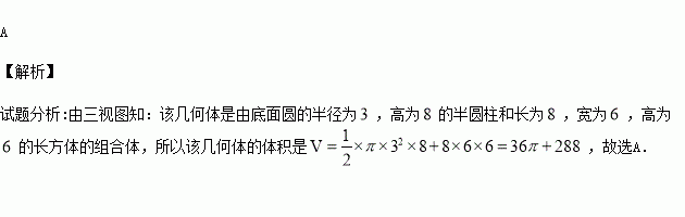 已知某个几何体的三视图如下图(正视图的弧线是半圆),根据图中标出的数据,这个几何体的