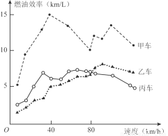 汽车的“燃油效率”是指汽车每消耗1升汽油行驶的里程,下图描述了甲、乙、丙三辆汽车在