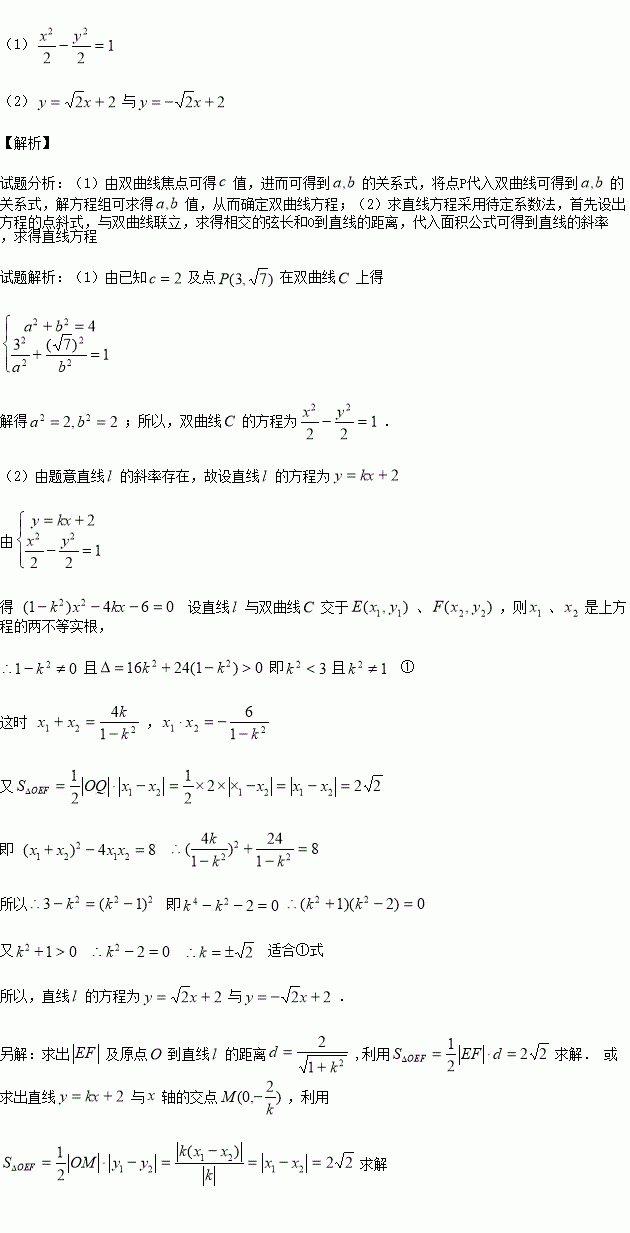 (2)记O为坐标原点,过点Q (0,2)的直线l与双曲线C相交于不同的两点E、F,若△OEF的面积为