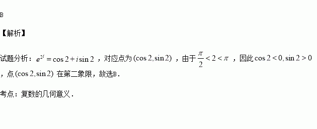 为虚数单位)是由瑞士著名数学家欧拉发明的,它将指数函数的定义域扩大到复数,建立了三角函数和指数函数的关系,它在复变函数论里占有非常重要的地位,被誉为“数学中的天桥”,根据欧拉公式可知,