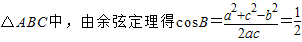 【答案】分析:(1)利用余弦定理求得cosB,进而求得B.
