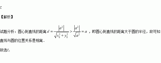 M(x0,y0)为圆x2+y2=a2(a>0)内异于圆心的一点,则直线x0x+y0y=a2与该圆的位置关系是( )